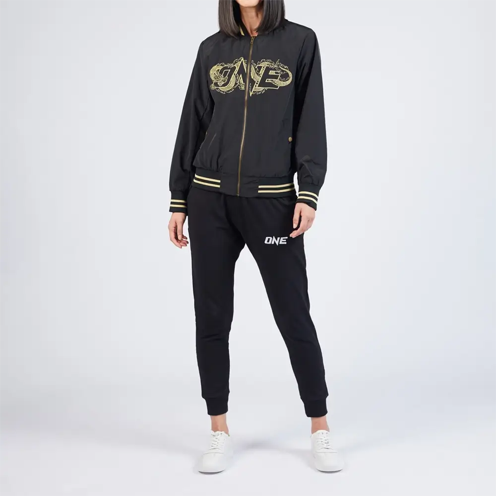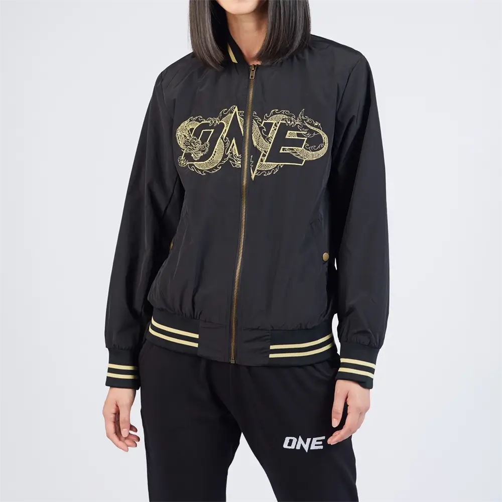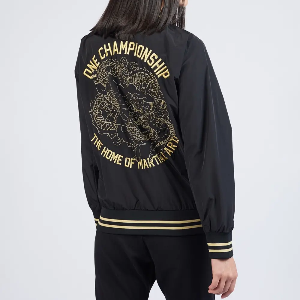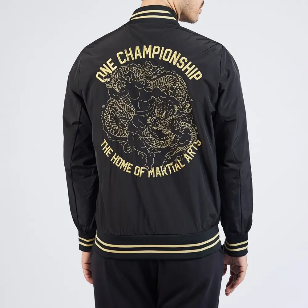 The ONE Dragon Souvenir Jacket features the ONE logo surrounded by a fierce and powerful dragon. The back of the jacket has a carefully embroidered illustration of a fighter battling a dragon and The Home of Martial Arts in bold. A one-of-a-kind collector’s piece!