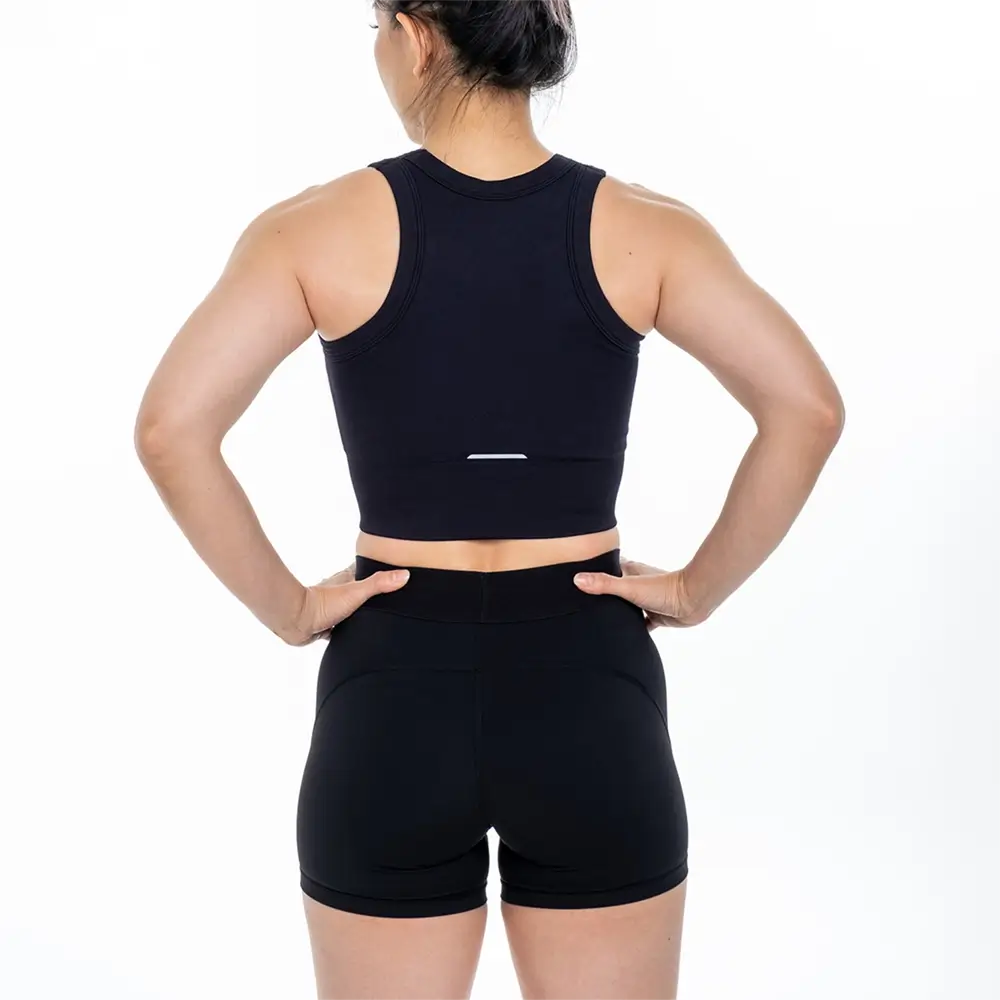 The Elite Sports Crop was designed with comfort and style in mind. Smooth, lightweight fabric wicks sweat to keep you dry and comfortable. With a high neck and wide straps, the sports crop feels snug and secure throughout the most active of workouts.