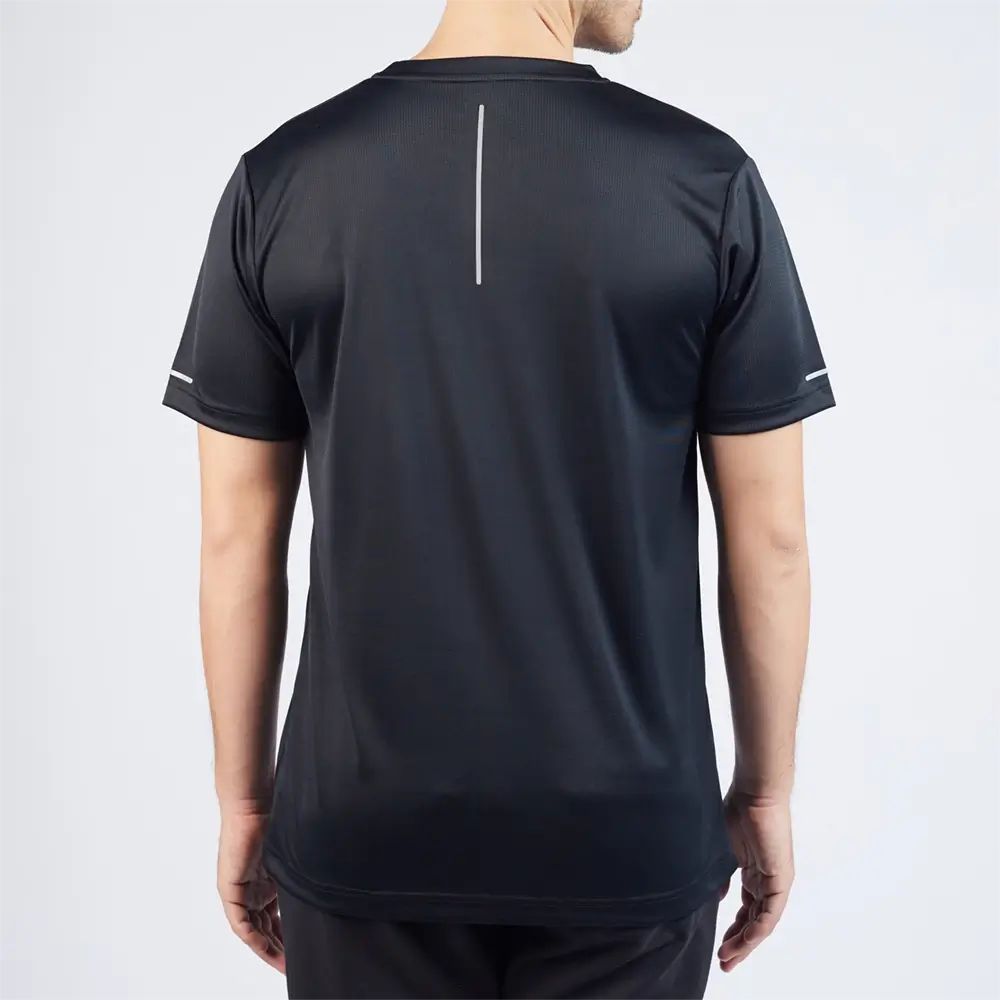 The Elite Training Top features a reflective ONE stroke logo, with reflective strips on the sleeves and back of a black microfibre tee.