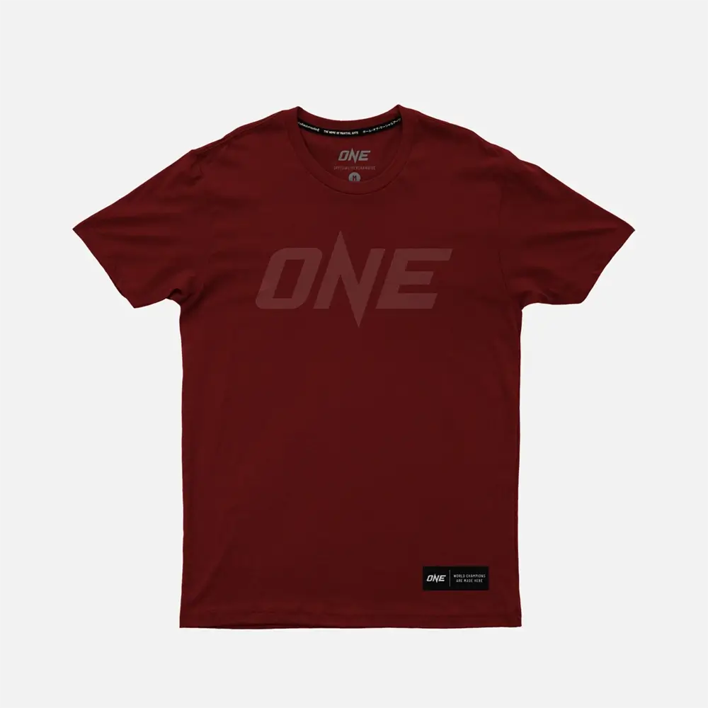 For those that prefer a deeper shade of red, the ONE Maroon Monotone Logo Tee features the ONE logo screen printed on the front in the centre of the chest in a deep maroon shade.