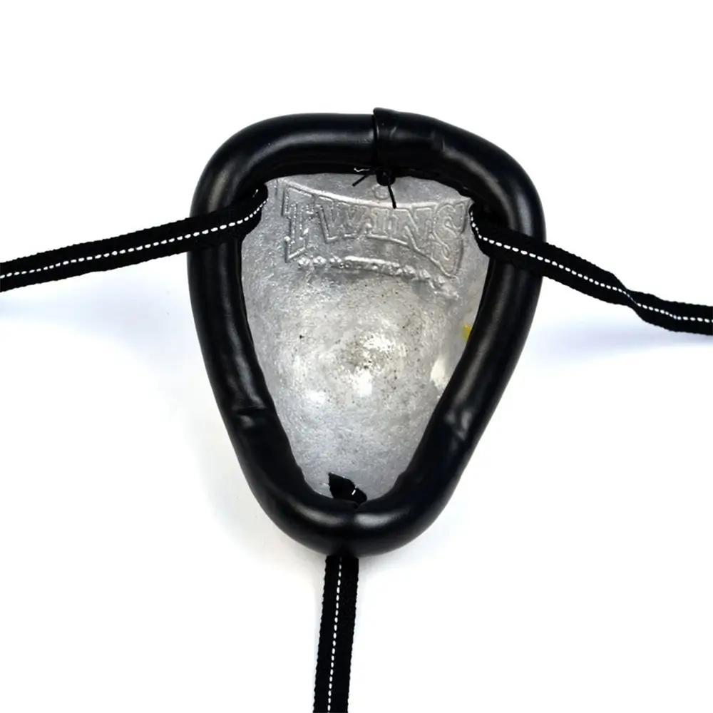 Twins steel cup groin protector features a steel cup and leather finishing. It is designed with three laces for a secure and comfortable fit.